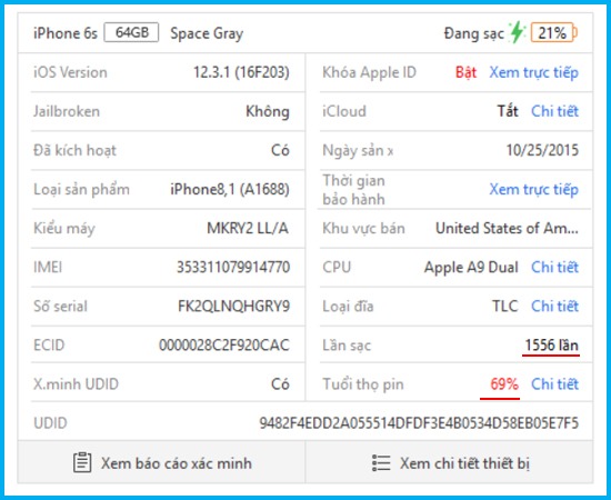 Bước 2: Lúc này tại giao diện 3uTools bạn sẽ thấy được Số lần sạc và Tuổi thọ Pin.