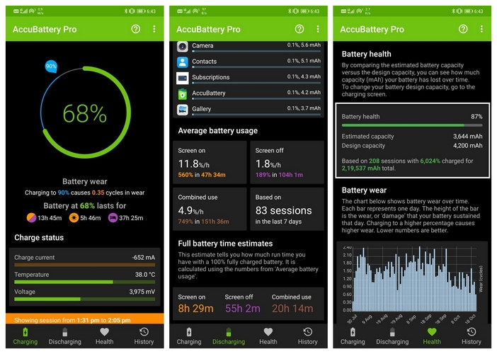Tuy nhiên, ứng dụng này cho phép người dùng xem qua những thống kê chi tiết về tốc độ sạc tính trên giờ, nhiệt độ, pin đạt được trong mỗi chu kỳ sạc, lịch sử sạc hay ngưng sạc.